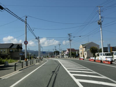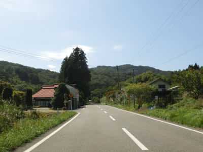 | 小塚集落に入るとセンターラインが復活して2車線道路となり、以降は快走路を走る。沿線の家屋は閉鎖されているが、郷の駅つしまという物産店は営業しており、スクリーニング場にもなっている。 | ||