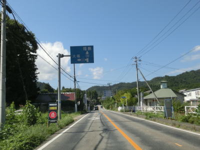| 福島r34交差点から少し走る周囲の風景に変化が見られ、請戸川沿いの谷筋に入る。左岸を走っていると右の急カーブを曲がった後に賀老集落に入り、賀老橋を渡って右岸に移る。 | ||