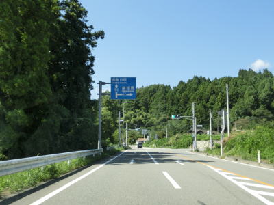 | 知命寺交差点から約4.9kmで常磐道の浪江ICを通過する。この浪江ICから西は最後まで通行止だった区間で、通行時(2018年9月)においても歩行者・自転車・2輪車・原付の通行は禁止されている。インターチェンジを過ぎた先に監視員がいるので自動車以外はそこで止められて引き返させられると思われる。 浪江ICから程なくして常磐道の本線の室原橋の下を通過する。北側の浪江IC〜南相馬ICは東日本大震災後の2014年12月6日に、南側の浪江IC〜常盤富岡ICは2015年3月1日に開通し、これを以って常磐道が全線開通となっている。 |