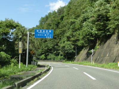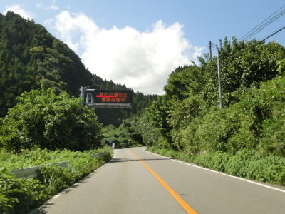 | 交通量の少ない2車線道路を上っていると昼曽根トンネルをくぐる。トンネルの手前には昼曽根発電所の送水管パイプが横切っている。トンネルを出ると請戸川に沿って大きく右にカーブしている。脇道や道路に面した家屋にはゲート等が設置されており進入できないが、駐車スペースは閉鎖されていない。ただし、長時間の停車はしないようにとの警告看板が設置されている。また、非常電話がいくつか設置されているが、これは通信インフラが十分に整備されてない、要は携帯電話の不通地域があるため、有事の際は公衆電話や非常電話を用いなければならないためだろう。 | ||