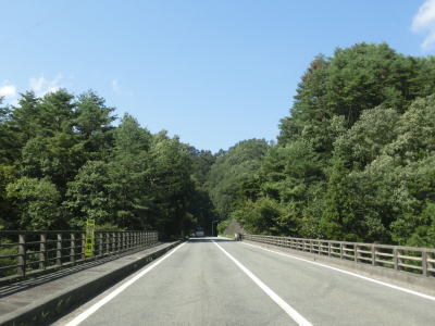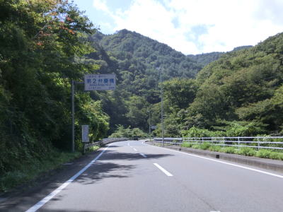 | 堰守橋を渡り終えた直後に500m程度の登坂車線が設置されているが、勾配はさほど急ではない。登坂車線が終わると大柿ダムと管理事務所に至る道路が接続している。交差点のすぐ先に門が設置されており、ダムの近くまで行く事はできない。 交差点の直後に仙人沢トンネルに入るが、北半分は左カーブとなっている。仙人沢トンネルを出てすぐに次の沢中トンネルをくぐるが、トンネル内に市町境があり西側は南相馬市域である。 |