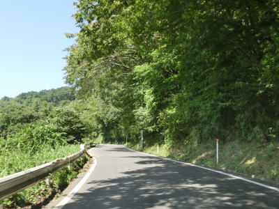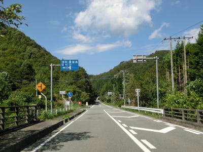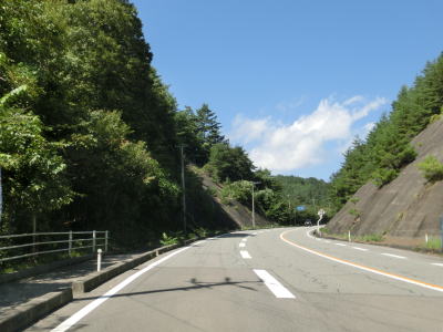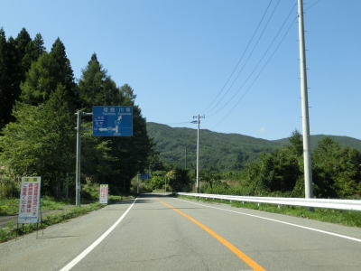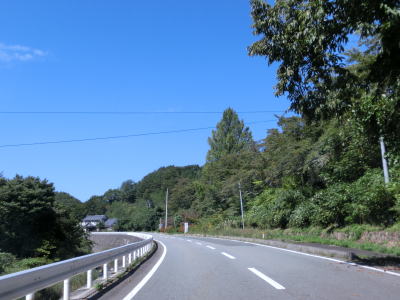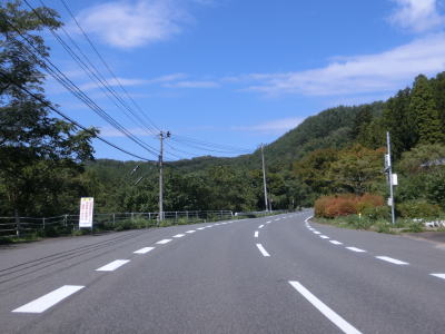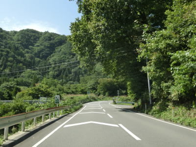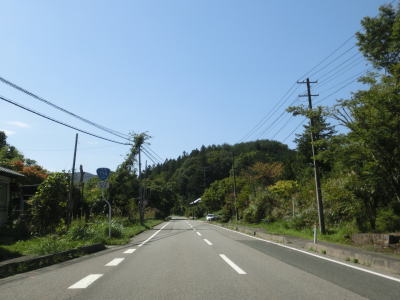 | 請戸川の左岸を走っているとセンターラインがなくなり1.8車線幅と少々狭くなる。椚平の集落内を走っているとセンターラインが復活して2車線道路になるが、集落が終わると同時に再びセンターラインがなくなる。道幅は1.8車線だが、制限速度は意外に高い50km/hに設定されている。 | ||