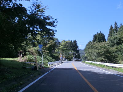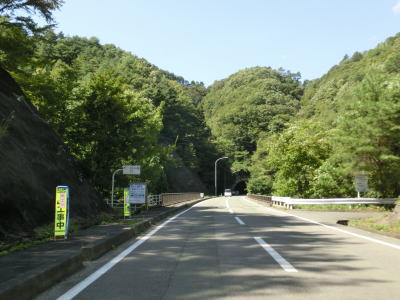| 第二沢中橋と第一沢中橋を相次いで渡った後に大柿トンネルをくぐる。大柿トンネルにも市町境があり、西側は浪江町域となる。南相馬市域を通っている距離は僅か700m程度で沿線に集落もないせいか、市町境標識は設置されてない。 | ||
