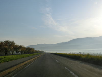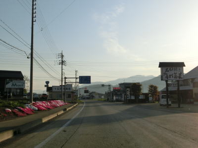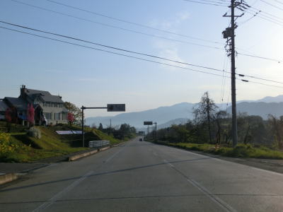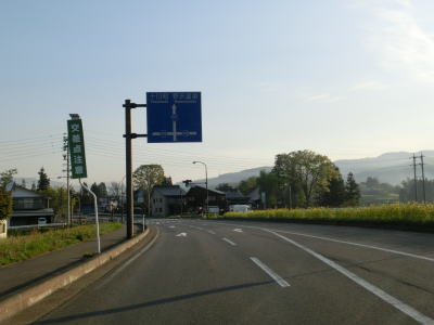 | 立ヶ花駅の西を過ぎた所で長野r29交差点を通過する。右折してr29の立ヶ花橋を渡った先には上信越道の信州中野ICがある。JR飯山線とともにアップダウンとカーブを繰り返す2車線道路を走る。早朝と言うせいもあって交通量が少なく速いペースで流れている。飯山線と千曲川の間の旧道との交差点を通過した先で中野市に入る。 | ||