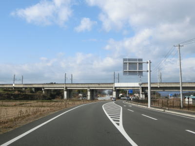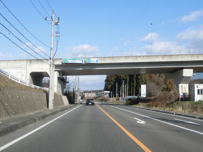 | 一里坦交差点を過ぎても片側2車線道路が続いているが、約500m西の福島r67交差点で右側車線が右折車線になって車線が減少する。また、一里坦交差点とr67交差点の間で再び鏡石町域に入るが、ここにも境標識は設置されていない。 対面2車線道路になったもののバイパス自体は続いているため走りやすい道路状況である。緩やかな勾配を下っているとE4東北道の下をくぐる。元々盛土だった場所にカルバートを造ってバイパスを通したものと思われる。 |