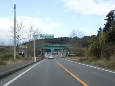 | JR水郡線に沿って北上していると福島r208交差点を通過してすぐに水郡線の跨道橋をくぐる。起点の水戸市から並走していたJR水郡線だが、この跨道橋より北は離れていくため並走ではなくなる。跨道橋以降は直線的ながらアップダウンの多い2車線道路を走る。 | ||