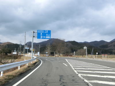 | 旧道と合流してからも平坦で直線的な2車線道路が続いており、交通量が少ない事もあって走りやすい状況である。やや急なカーブを曲がって緩やかな勾配を下った先で福島r55交差点を通過する。 | ||