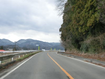 | 福島r29交差点を通過した後は山裾を走るが、多少アップダウンが増える程度で快走路である点に変化はない。拡幅工事が行われている区間があったが、元からセンターライン付きの2車線道路であり狭路という訳ではない。 | ||