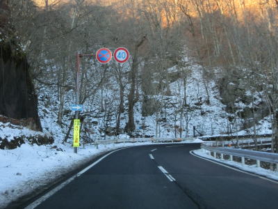 | 22.カーブが非常に多い | 23.連続ヘアピンカーブ区間が始まる | 24.「中尊寺湖6km 明智平4km」 |