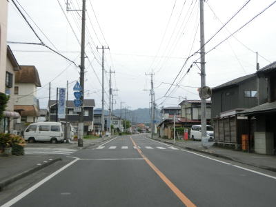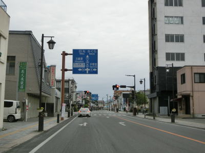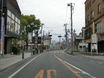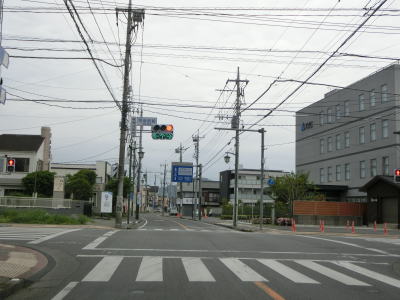| 市役所前交差点ではR293だけが分岐してR352の重複は続いている。引き続き2車線道路を北上する。市役所に近い場所ながら早朝であれば交通量は少ない。周辺の建物も一般の家屋が中心になる。 | ||