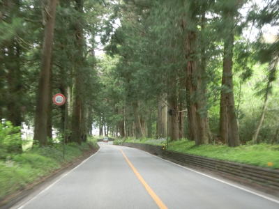 | 疎らな杉並木を走っていると日光市に入り、市境の直後から杉の木の密度が高くなる。杉並木のせいで拡幅も難しいようで車線幅に余裕がなく制限速度は40km/hと若干低く設定されている。 | ||