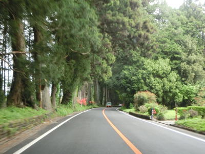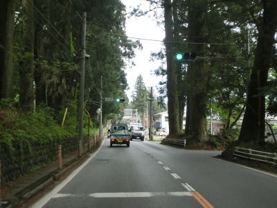 | 95.鬱蒼とした杉並木を走る | 96.現道との交差点 | 97.バイパスは杉並木を外れている |