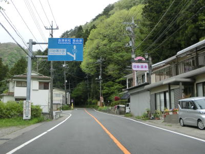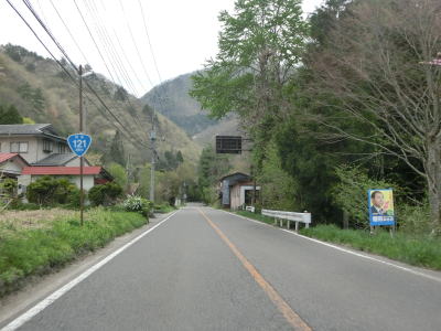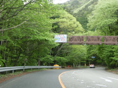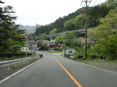 | 沿線に家屋が建ち並んでおり若干狭い場所や急カーブがあるため、大型車両は栃木r23へ迂回するようにお願いされているのだろう。川治橋を渡って程なくすると川治湯元駅への市道との交差点を通過し、以降は沿線の家屋が途切れる。 | ||