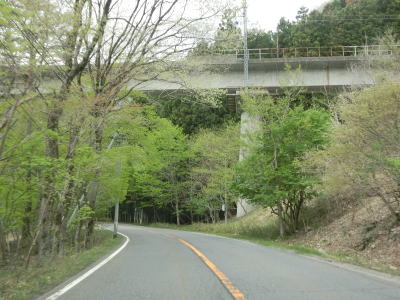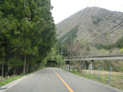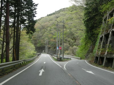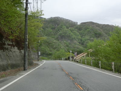 | 中三依集落を過ぎてからも男鹿川の谷筋が続いているが、これまでに比べて狭くなっているように思える。法面補剛工事のため片側交互通行規制箇所を通り過ぎると野岩鉄道の橋梁をくぐる。 | ||