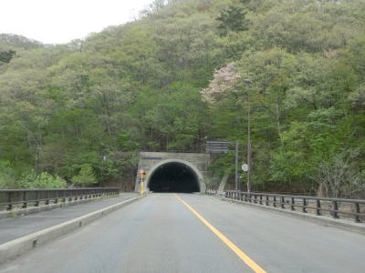 | 男鹿川の右岸を走っていると五十里橋を渡って五十里トンネルをくぐる。既に営業していないと思われる湯西川・川治・川俣温泉の案内所の前を左にカーブして海尻トンネルをくぐる。 | ||