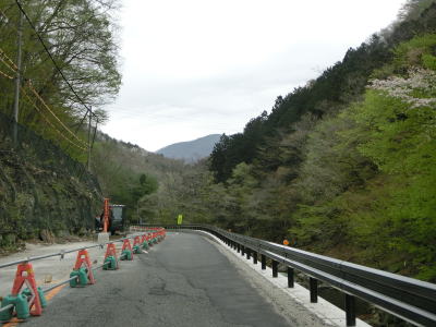 | 198.男鹿川の谷筋を走る | 199.法面保護工事のため片側交互通行規制中 | 200.野岩鉄道 |