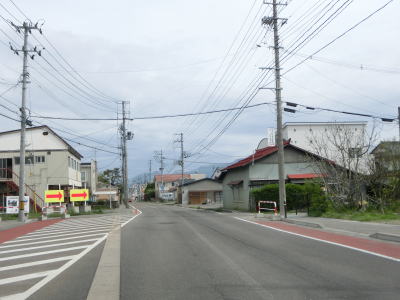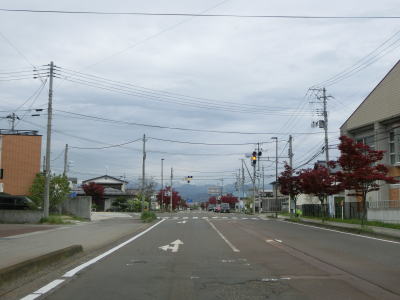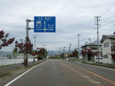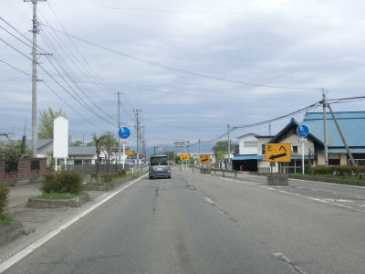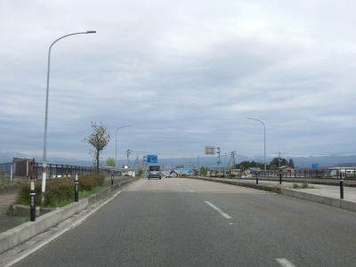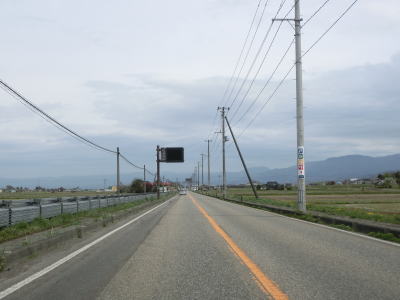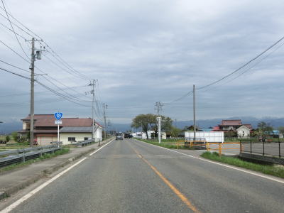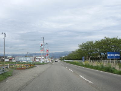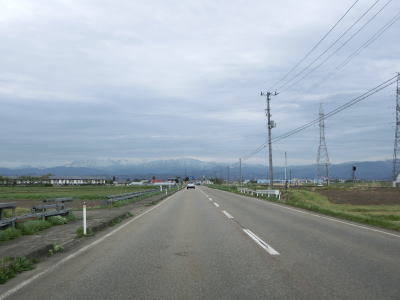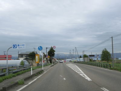 | 堂島駅の西で福島r33交差点を通過し、JR磐越西線の西側を北北西に向かって走る。正面に冠雪した山々が見えるが、飯豊山や三国岳と思われる。平坦な直線道路を走っていると湯川村に入る。 | ||