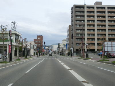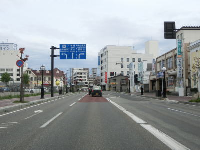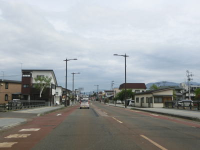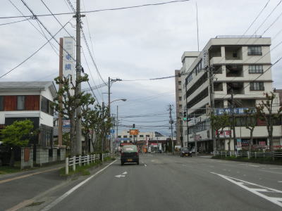 | 拡幅されていない区間は自転車通行帯も設置されておらず、市の中心部にしては若干狭苦しい2車線道路を走る。R118・R401城西交差点を通過するが、ここから北はR118に加えてR401も重複している。城西交差点からは自転車通行帯が再び現れるが、大橋の手前で歩道に誘導されてしまう。 | ||