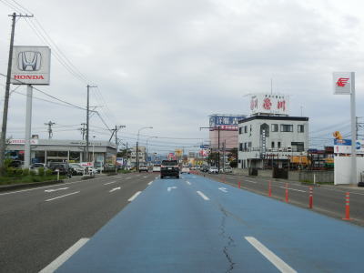 | 283.やや狭い2車線道路 | 284.R118・R401城西交差点 | 285.城西交差点以北は自転車通行帯が復活 |