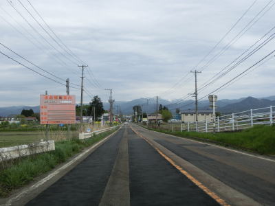| 阿賀川の左岸を快走していると小谷橋で阿賀川と会津鉄道の上を通過してやや急な左カーブを曲がる。その先で基幹農道と案内標識に表記された道路との交差点を通過するが、この道路はウオッちずでは県道として表記されている。北に辿ってみると自転車道に接続している事から福島r392(会津若松熱塩温泉自転車道線)と思われる。 | ||