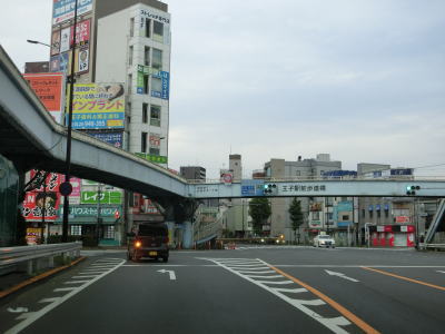 | 王子駅前歩道橋交差点からは中央分離帯のない4車線道路で王子駅の北口ロータリーの前を通過して右カーブを曲がる。右側車線は大型貨物車両と特定中型貨物車量の指定通行帯で、左側車線はバス専用車線(日曜休日を除く7:30〜9:00)となる。後者の対象車両には路線バスの他に通勤通学バス通勤送迎バスが含まれる。 | ||