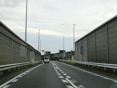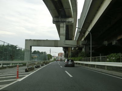 | 石神交差点を過ぎると市道の跨道橋、北川口陸橋、大通り橋、西通り橋の下を次々にくぐる。このうち北川口陸橋は片側2車線道路であり双方の両方面と接続している。左側車線と右側車線の間にゼブラゾーンが付加されて少し離れた状態になると市境を越えてさいたま市に入り、その直後にJR武蔵野線の跨道橋をくぐる。ゼブラゾーンは橋脚部分を避けるために設置されており、通り過ぎれば普通の白線に戻る。E4東北道の浦和ICの料金所の横は若干カーブしており、直線に戻る辺りで流出路が合流する。 | ||