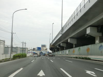 | 首都高S1川口線の本線とランプに挟まれた片側2車線道路を走っているとR298西新井宿交差点を通過する。交差点の上は川口JCTであり、南が首都高S1川口線、北がE4東北道、東西がC3東京外環道である。 西新井宿交差点を過ぎるてからも片側2車線道路が続くが、上下線の間の道路は首都高S1川口線からE4東北道に替わっている。川口JCT付近は高架橋だが徐々に低くなって国道の方が高い位置になる。埼玉r103石神交差点の上下線の間は石神陸橋が架けられている。 |