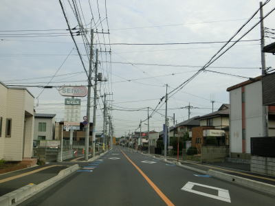 | 埼玉r2交差点からも対面2車線道路が続いているが歩道は設置されていない。東武野田線とは野第48号踏切で交差しており、跨線橋でもアンダーパスでもないためメインルートではないとは言え流れが悪くなりやすいと思われる。踏切を越えて少し走ると歩道が設置されているため幾分か走りやすく感じる。 | ||