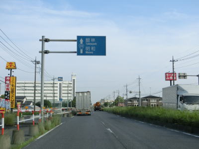 | 緩やかな勾配を上った先で平成明和橋を渡って館林市に入る。市町境の橋ではあるが、名称は合成ではなく一方の町名のみ付けられている。緩やかに下りながら左カーブを曲がった先で群馬r83第三中学校西交差点を通過する。以降は平坦な直線道路を北上する。 | ||