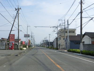 | 中野向地交差点を過ぎてからも平坦で直線的な対面2車線道路が続いている。歩道は片側にしか設置されていない区間が多くおらず、しかも場所によって北側だったり南側だったりする。群馬r152大根村交差点を通過して家屋と田畑が混在している中を走っていると太田市に入る。市町境は名称不明の河川であり、その上に架かっている橋は外道橋という。読み方は“げどう”ではなく“げとう”である。 | ||