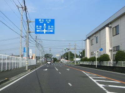 | 交通量の多い片側2車線道路を北上しているとE50北関東道の太田桐生ICを通過する。2つの市名を繋げた名称だが、インターチェンジの全域が太田市域に含まれており、桐生市域は掠めてもいない。 太田桐生ICを過ぎてすぐにR50・群馬r256との只上交差点に至る。案内標識にR122のおにぎりが表記されていないが、左折してR50との重複区間を前橋・桐生方面に進む。約2.3km東の南大町交差点はR407の起点であり、さらに2.9km東の公設市場前交差点はR293の終点である。 |