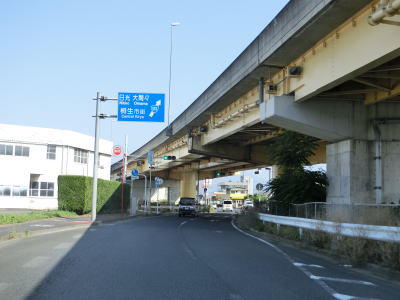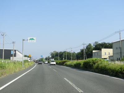 | 只上高架橋から平面道路に戻って少し走ると群馬r254との原宿南交差点を通過する。周辺には工場や倉庫が多く、平日の昼間は貨物車両の通行が多いものと思われる。赤城山のイラストが描かれた標識が設置されており、視界が確保できれば実物も見えるのだろうが、走行した日は見えなかった。 | ||
