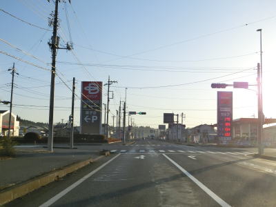 | 栃木県の県庁所在地である宇都宮市の市街地に東に位置するR4・栃木r1平松町交差点がR123の起点であり、ここから東に隣接する茨城県の県庁所在地の水戸市に向かう。中心部からやや離れているものの一桁幹線国道と交差しているとあって早朝でも交通量が多い。 平松町交差点からR123に入った直後にR123のおにぎりとr1のヘキサの串刺し標識が確認できる。栃木県は串刺しおにぎりだけでなくおにぎりとヘキサの串刺し標識の設置率が高い県である。前回走行時(2013年10月27日)は交差点の直後の東向き車線が1車線だけだったが、拡幅されたようで両方向とも2車線になっていた。しばらく中央分離帯のない4車線道路が続くが、産業道路入口交差点を過ぎると中央分離帯付きの片側2車線道路になる。 |
