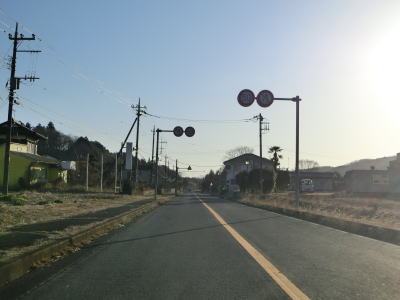 | 茨城r112大桂大橋入口交差点を通過する。交差している道路はビーフラインという広域農道であるが、右折方向は供用後しばらくしてから茨城r212に指定されている。2025年2月現在はr212もビーフラインも一部区間が供用されていない。 大桂大橋入口交差点から約800mでr212現道との阿波山十字路交差点を通過する。さらに南下すると茨城交通茨城線が交差していた地点を通るが、踏切どころか線路があった痕跡すら確認できない。なお、交差地点が廃止になったのは全線が廃止された1971年よりも5年前の1966年とさらに年月が経過している。 |