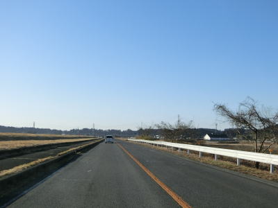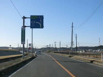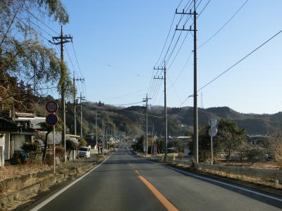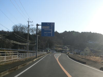 | 石塚二本松交差点からは平坦な片側1車線道路を走る。中央分離帯に当たる部分がやたら広い事から片側2車線で計画されているものと思われる。城里町の中心部の南東で町道との石塚一本松交差点を左方向に進む。右折の町道が旧道である。 | ||