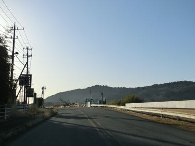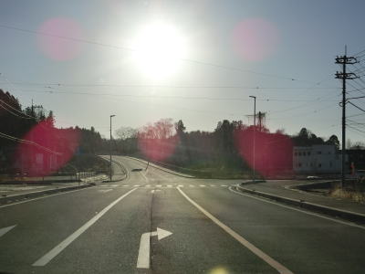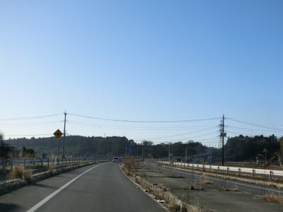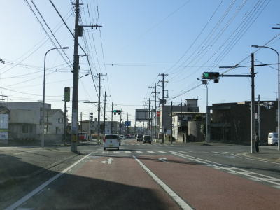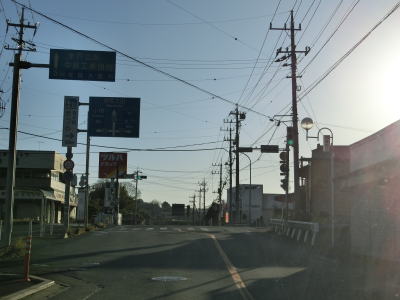 | 92.計画では片側2車線道路と思われる | 93.旧道との石塚一本松交差点を左方向へ進む | |
