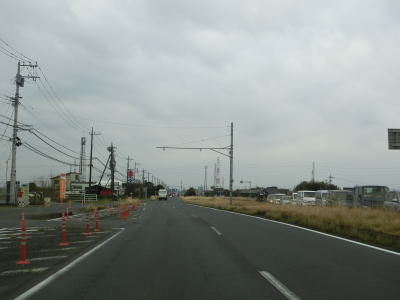 | 鹿嶋市に入ってからも対面2車線の快走路が続いているが、鉾田市内に比べてアップダウンがある。とは言うものの勾配は非常に緩やかなため、車両での走行であれば全く気にならない。茨城r186鹿嶋市役所大野出張所入口交差点を通過するが、その前後で工事が行われていた。交差点付近のみである事から右折車線と推測する。 | ||