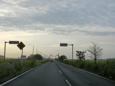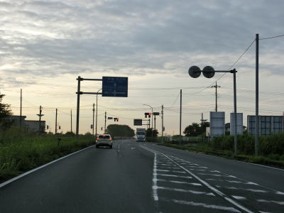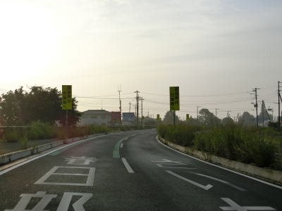 | 豊野台テクノタウンという工業団地の南を走っていると市境を越えて久喜市に入る。緩やかな左カーブを曲がってから埼玉r316高柳(北)交差点を通過して緩やかな右カーブを曲がる。 | ||