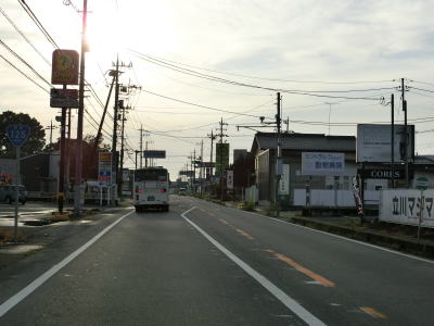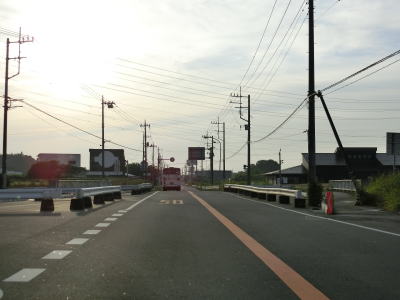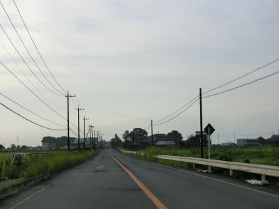 | 上大野(東)交差点を過ぎてからも歩道の整備されていない対面2車線道路が続いている。アップダウンもカーブもごく緩やかなのだが、昼間の交通量が多い時間帯であれば走りにくく感じるかもしれない。旧三和町の中心部だった場所の北を走っていると茨城r17諸川交差点を通過する。旧中心部の北東で左にカーブした後に西仁連川に架かる尾崎橋を渡ってから右カーブを曲がる。 | ||