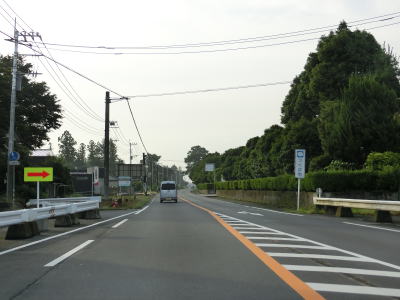 | アップダウンを繰り返すバイパスを快走する。対面2車線道路ながら沿線の建物がほとんどないため非常に走りやすい。茨城r45との交差点を通過するが、信号機どころか案内標識もセンターラインの切れ目もなく県道が交差しているようには見えない。約700m東にもr45が交差しているが、こちらはバイパスであり信号機も案内標識も設置されている。 | ||