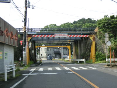 | 桜川橋を渡って少し走ると茨城r123富士崎町交差点を通過する。左カーブを曲がっているとJR常磐線のガードをくぐる。桁下は4.0mとやや低いため、200m手前と100m手前に制限高を示すバーが設置されている。 | ||