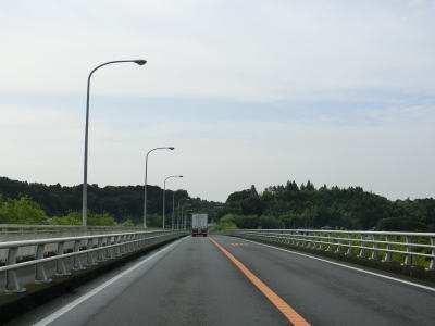 | 水郷大橋で利根川を渡ると千葉県香取市に入る。橋を渡り終えて緩やかな下り勾配の右カーブを曲がっていると千葉r2水郷大橋南交差点を通過する。r2は水戸鉾田佐原線といい、茨城r2であると同時に千葉r2でもある。 | ||