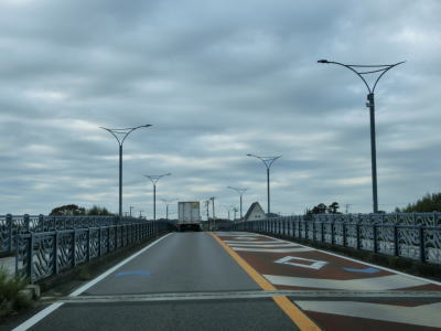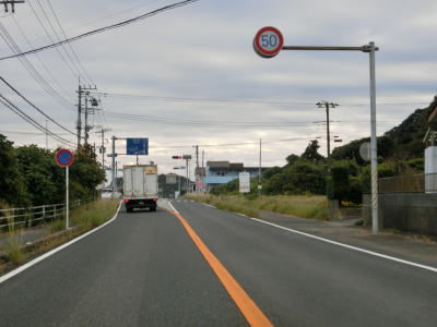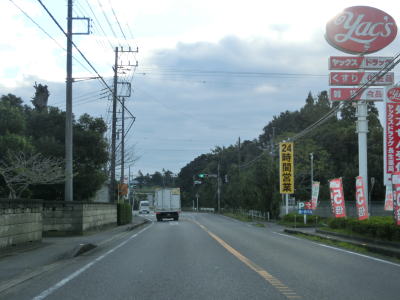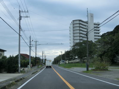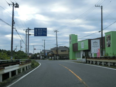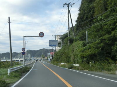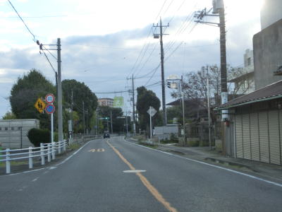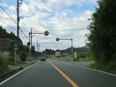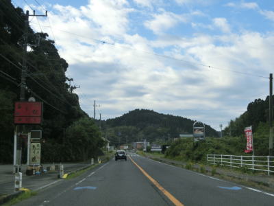 | いすみ市に入ってからもアップダウンのほとんどない2車線道路が続いている。海は見えないが比較的近い場所を通っており、釣具店の他に観光客向け(?)の飲食店が点在している。千葉r229太東灯台入口交差点を通過してさらに南下していると江東橋を渡る。南詰で千葉r405が分岐して夷隅川の右岸沿いを進む。旧岬町の中心部の東を走っていると千葉r152江場土交差点を通過する。 | ||