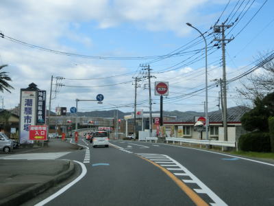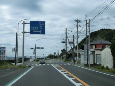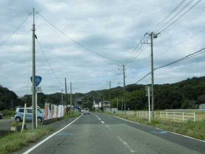 | 左(南)側は太平洋が広がっているが、防砂林で視界が遮られるせいで海は見える場所は少ない。南房総市に入ってから約2.0kmで道の駅「和田浦WA・O!」を通過する。JR内房線の和田浦駅と隣接しているものの駅の出入口は北側にしかなく、鉄道駅と道の駅を行き来するのは不便である。道の駅はかつての町役場の隣接地に建てられており、その少し先の和田漁港付近では急なカーブが多く、また家屋密集地を通っているため走りにくさを感じる。 | ||