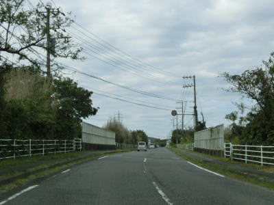 | 緩やかなS字状のカーブを曲がって旭橋を渡る。橋の前後に千葉r403が交差しているが、手前で交差して和田サーフ橋を含む方はバイパスと思われる。旭橋を渡って以降は沿線に家屋が建ち並んでいるうえに歩道が整備されておらず走りにくく感じる。千葉r186下三原交差点にも全方向に右折車線が設置されていない。 | ||