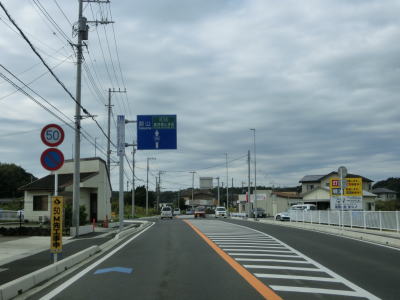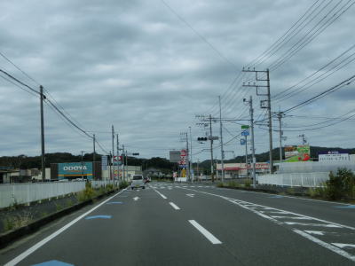 | 加茂交差点からも勾配もカーブもほとんどない2車線道路が続いている。交通量は多少増えているものの流れは良く走りやすい。緩やかな上り勾配が始まり、緩やかなカーブをいくつか曲がった後に名もなき峠を越えると館山市に入る。 | ||