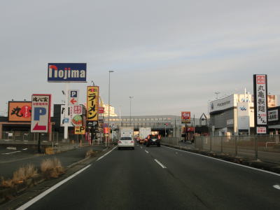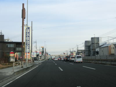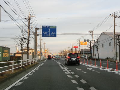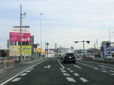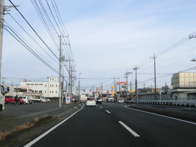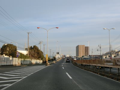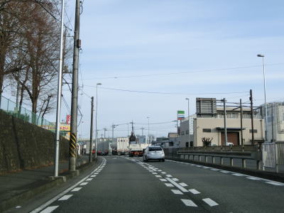 | 船子陸橋から平面に戻る所で船子陸橋交差点を通過するが、ここから北はR246も重複する事になる。番号からするとR129が格上だが、案内標識にはR246のおにぎりが表記されている。これはR246が国土交通省が管理する指定国道である点が影響しているのかもしれない。R412は当然のように案内標識に表記されていない。なお、船子陸橋交差点は南に小田急小田原線が隣接しているせいもあって、R129平塚方面(R412重複)〜R246伊勢原方面との行き来はできない。両方面の往来には神奈川r63とr204を走る事になる。 船子陸橋交差点からは片側3車線道路になる。厚木市の市街地の西に造られたバイパスだが、沿線には多くの建物が建っており交通量も非常に多い。約800m走ると神奈川r603水引交差点を越える厚木陸橋で左端の車線が平面の交差点に向かう側道になってしまう。厚木陸橋から降りて平面道路に戻ると片側3車線になる。 |