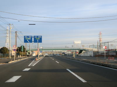 | 厚木ICから少し進むとE1東名の本線の下をくぐった後に神奈川r63船子北谷交差点を通過する。E85小田厚と案内されている道路がr63だが、案内標識にヘキサが表記されていない。かつてはR271の一般道部であったが、2006年3月に国道からr63に変更されている。そのため、現在のR271は有料の小田原厚木道路のみである。 船子北谷交差点からごく緩やかな右カーブの先で船子陸橋を通過する。その下には小田急小田原線とR246(細かく言えば大和方面から伊勢原方面へのランプ部分)が通っている。 |