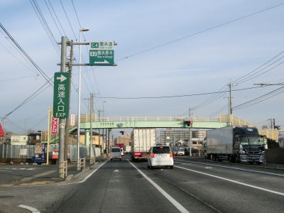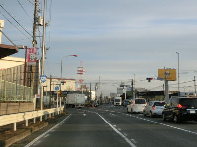 | 金田交差点からは片側2車線道路を北に向かって走る。沿線の建物は多いままだが、商業施設よりも工場や倉庫が多い。約1.2km走るとR468/C4圏央道の圏央厚木ICを通過する。R246のバイパスの秦野厚木道路が圏央厚木ICに接続してジャンクションになる計画があるが、現時点では開通時期は未定である。 交通量の多い片側2車線道路を走っていると神奈川r42関口中央交差点を通過する。かつては東側の座間方面しか道路がなかったが、東側も供用されたうえにr42がアンダーパスする立体交差化されている。右折してr42を東に進むとR468/C4圏央道の厚木PA/SICに行く事ができ、相模川の左岸からであればR129に回り込む必要のない厚木SICの方が便利である。 |