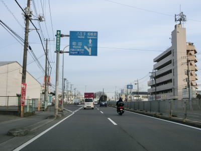 | 上溝南高校前交差点のためで右側に車線が増えるが、上溝南高校前交差点は右折が禁止されておりその先の神奈川r508上溝バイパス入口交差点の右折車線となる。交差点の名称とr508という県道番号が示す通り、ここから北は上溝バイパス区間でr508が旧道であり、引き続き交通量の多い片側2車線道路を走る。 | ||